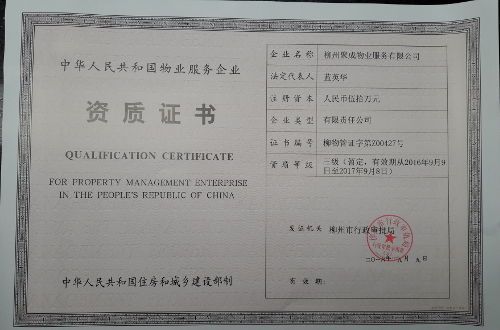 柳州聚成物业服务有限公司注册成立于2016年7月25日,公司经营范围有:物业管理、房屋修缮、家政保洁、会展策划、房地产中介、户外拓展策划服务;绿化工程施工;食品、日用百货销售。聚成物业具有物业管理三级资质,公司实行董事会领导下的总经理负责制,设有行政人事部、财务部、工程部、秩序维护部和保洁部五个职能部门,现聘用员工98名,其中管理人员16人,全部具有大专以上学历,中级职称6人。操作层各类水、电、电梯、绿化等技工8余人,秩序维护人员52人,保洁人员22人。公司部门经理以上管理人员均取得国家建设部颁发的物业管理资格证书,具有多年物业服务管理工作经验。